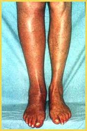 knotigen Schmerzen oder dunkler Verfärbung des Beines, die nicht